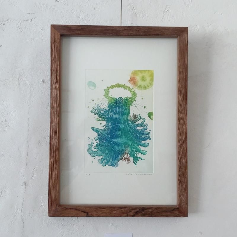 鴫原佳代|銅版画|きらめく星屑の指輪|額装