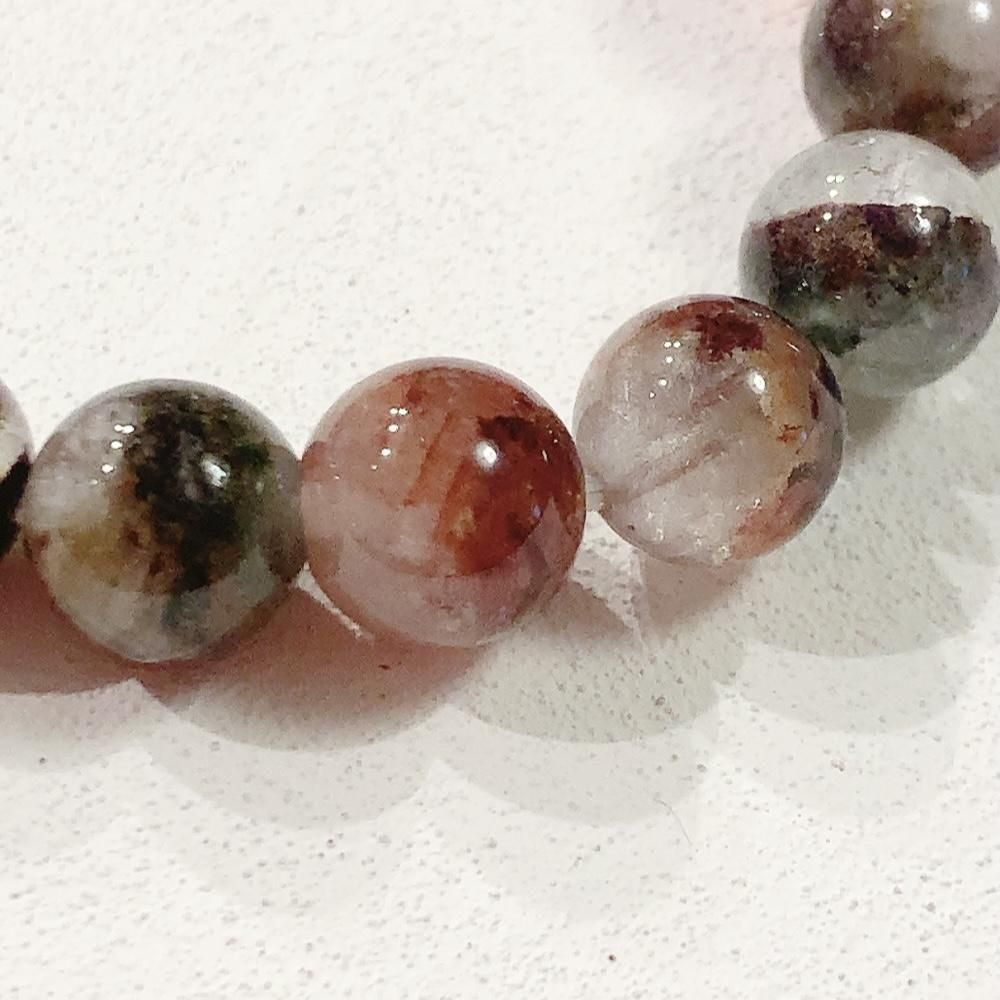 水晶の中に緑、黒、赤などの内包物があり、庭園のように色とりどりの色を楽しめる水晶です。内包物はクローライトやルチル、トルマリン、アンフィボール、マイカ(雲母)など。これらの鉱物が水晶の中に含まれ、自然の作り出す景色をお楽しみいただけます。