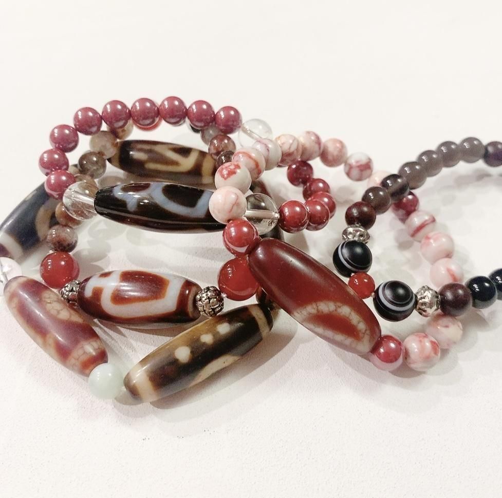 長い歴史の中で、天珠は悪霊や災いから持ち主を守り、幸福や繁栄をもたらすと信じられてきました。英語ではdZi beads(ジービーズ)と呼ばれています。