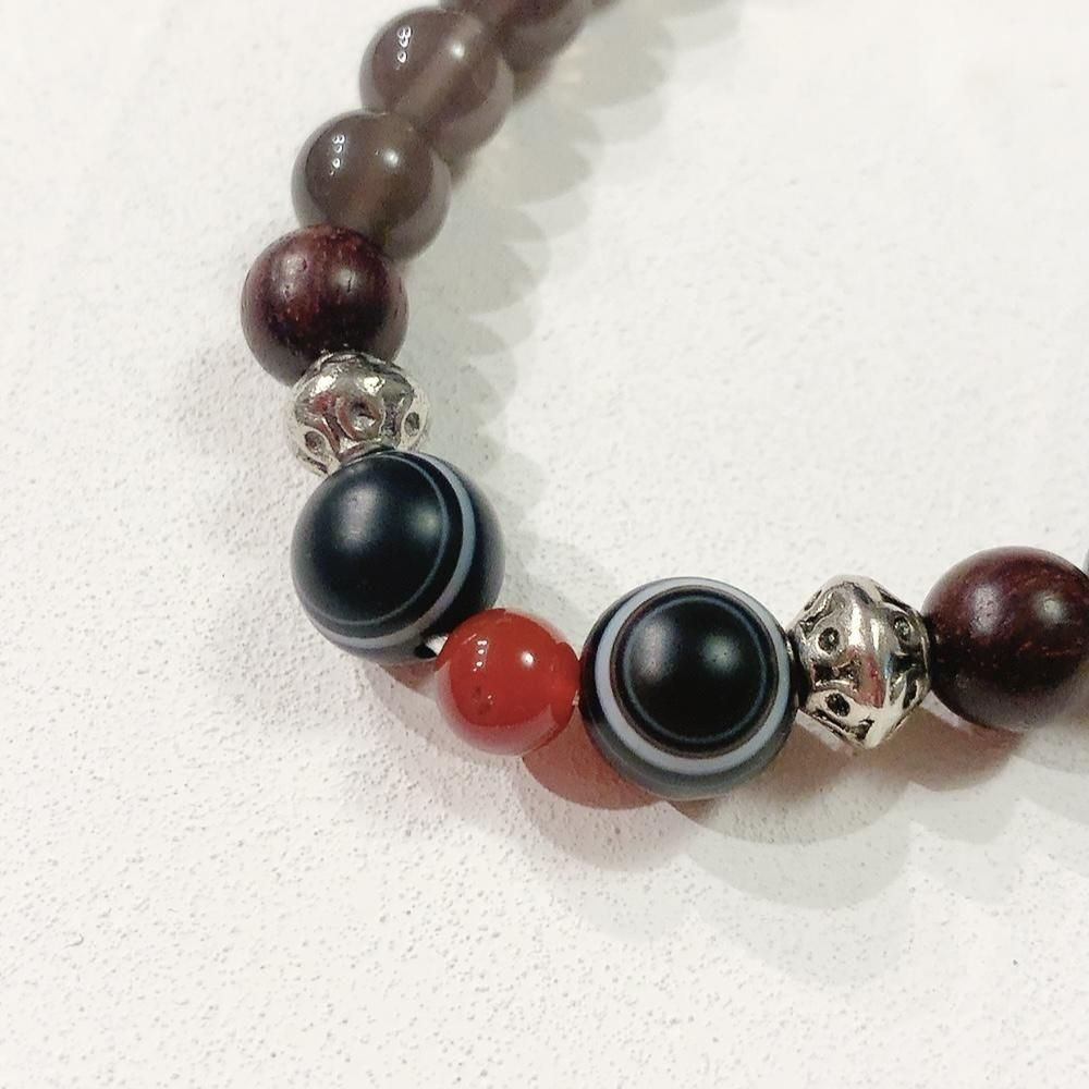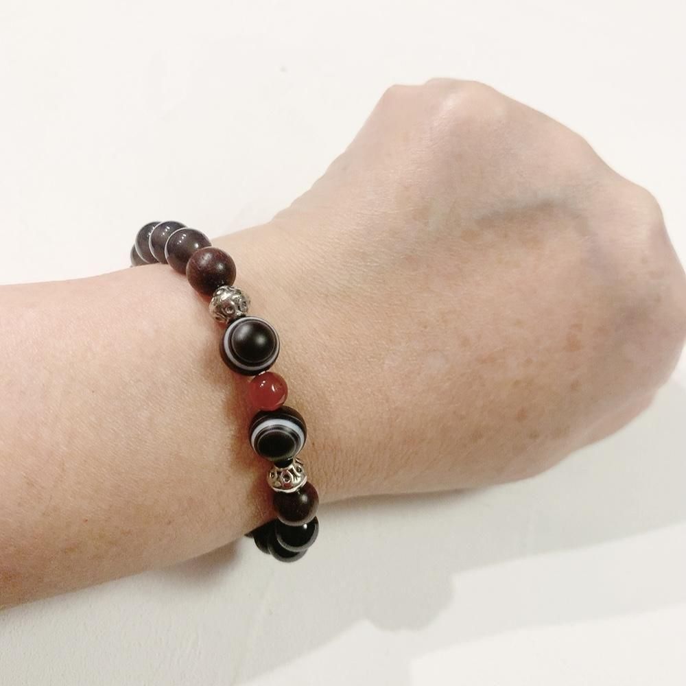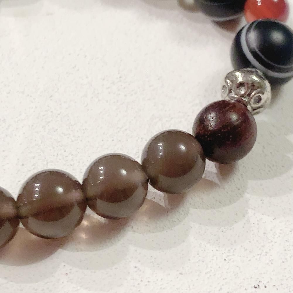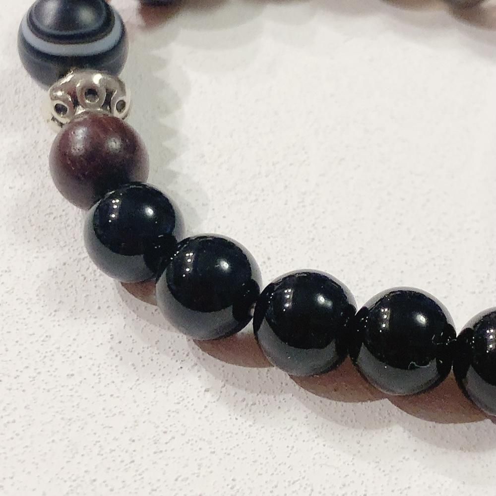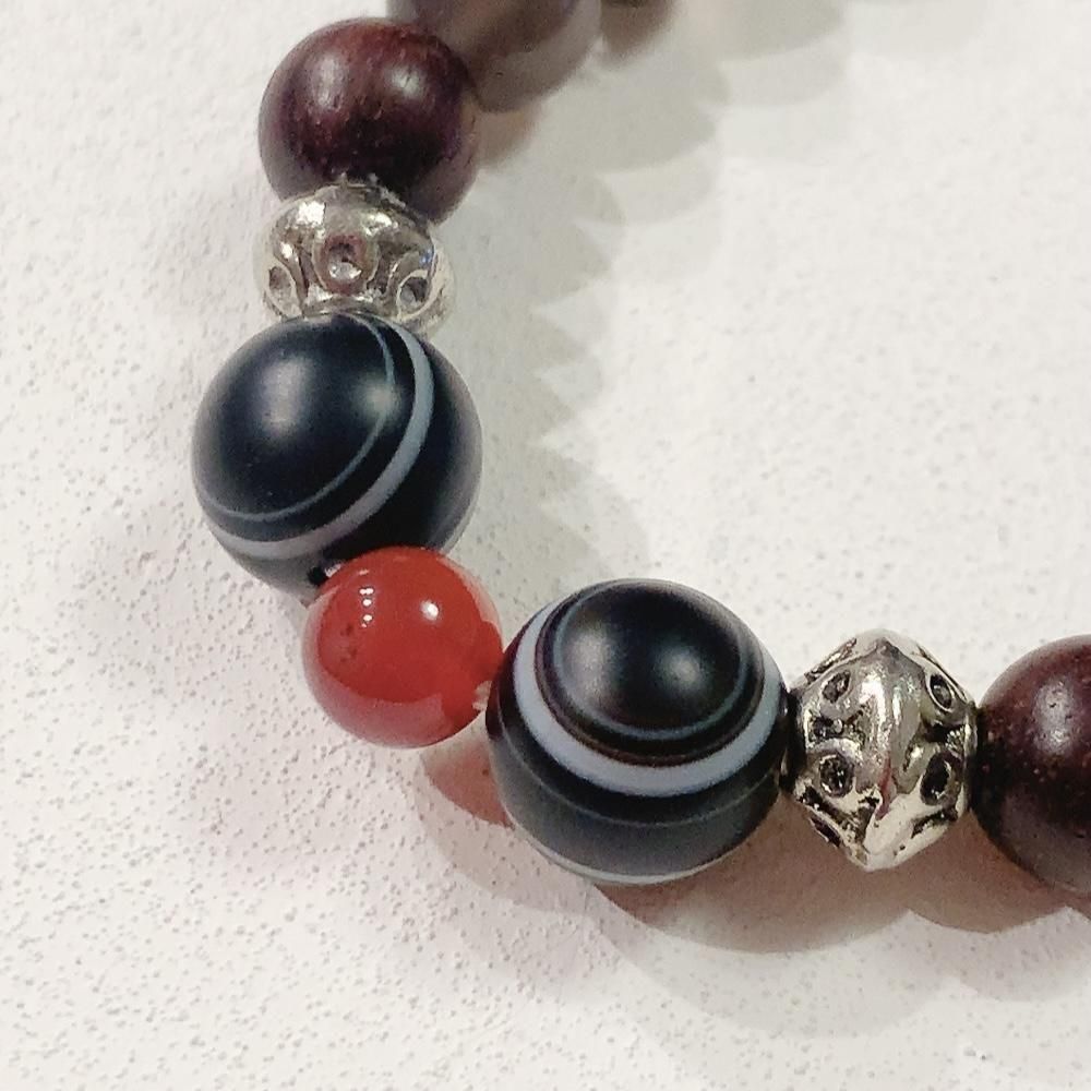 素材:紫檀、アイスオブシディアン、瑪瑙(天珠)、オニキス、カーネリアン