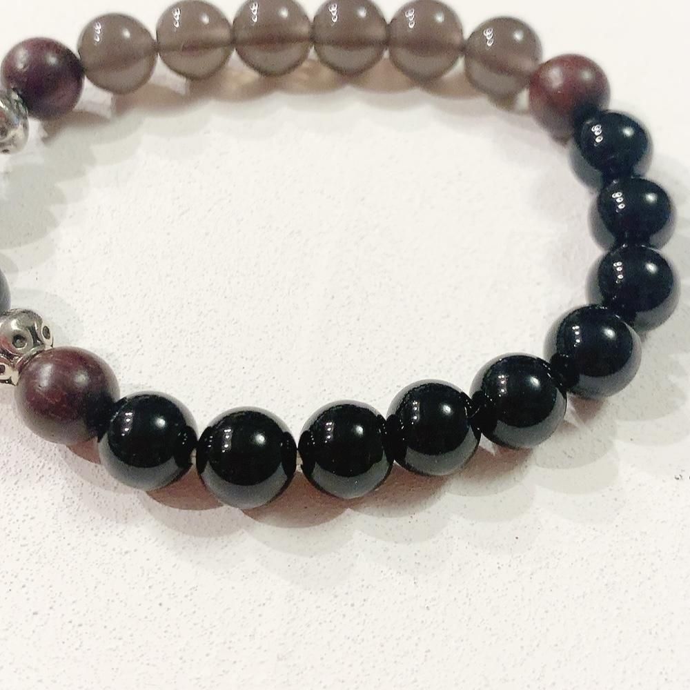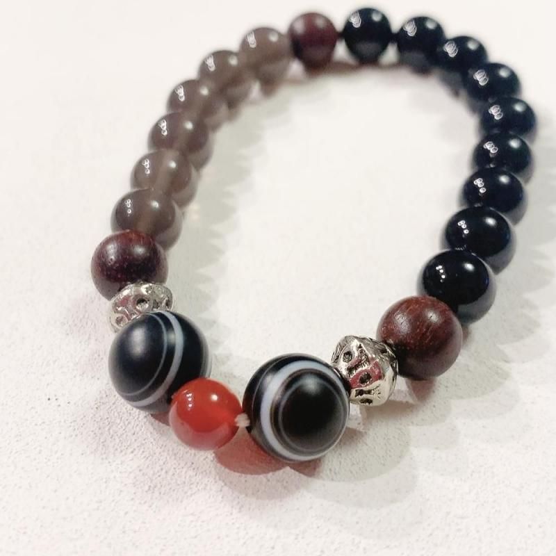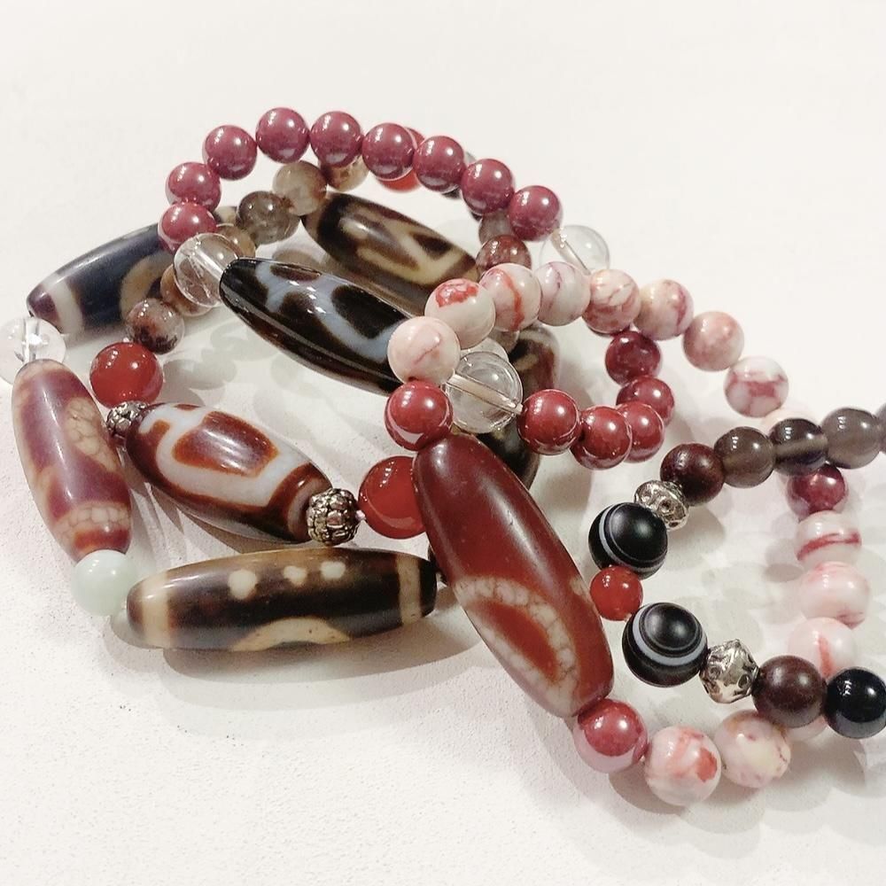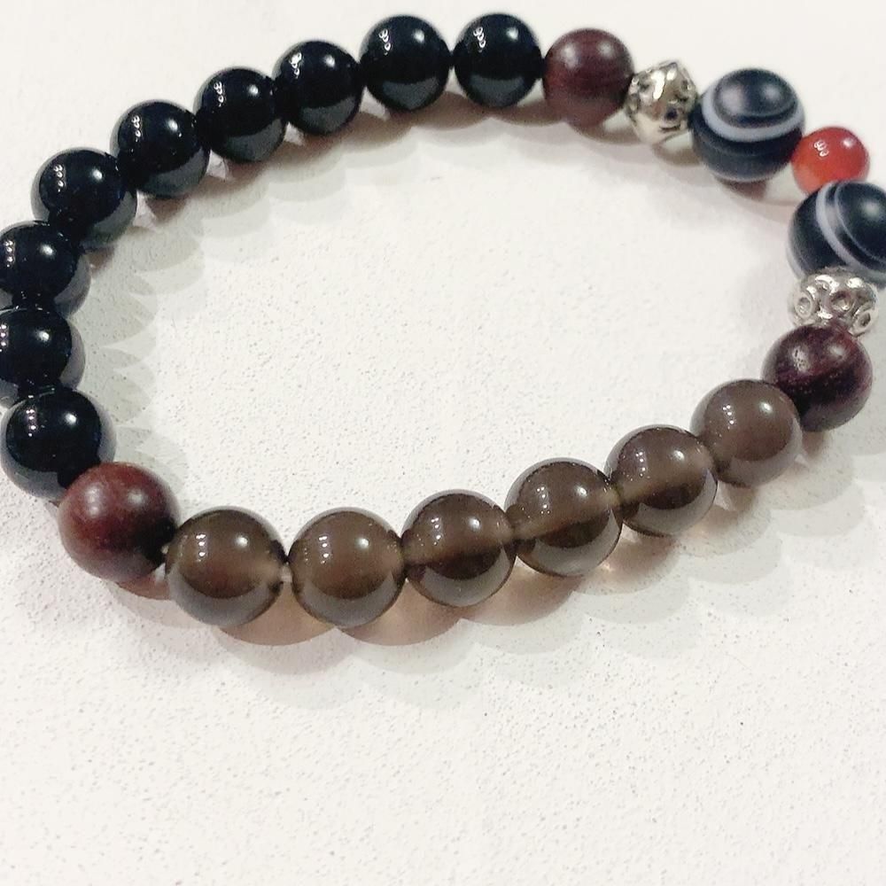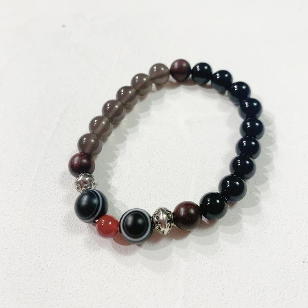 素材:紫檀、アイスオブシディアン、瑪瑙(天珠)、オニキス、カーネリアン