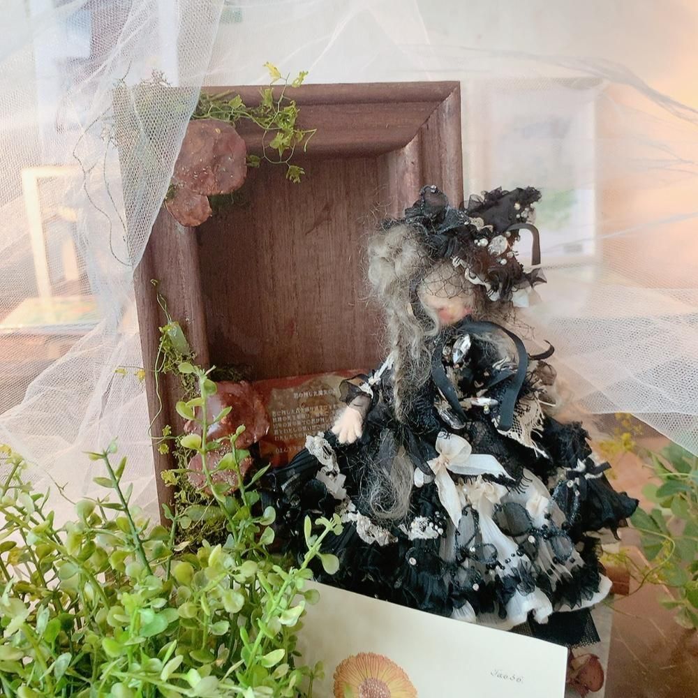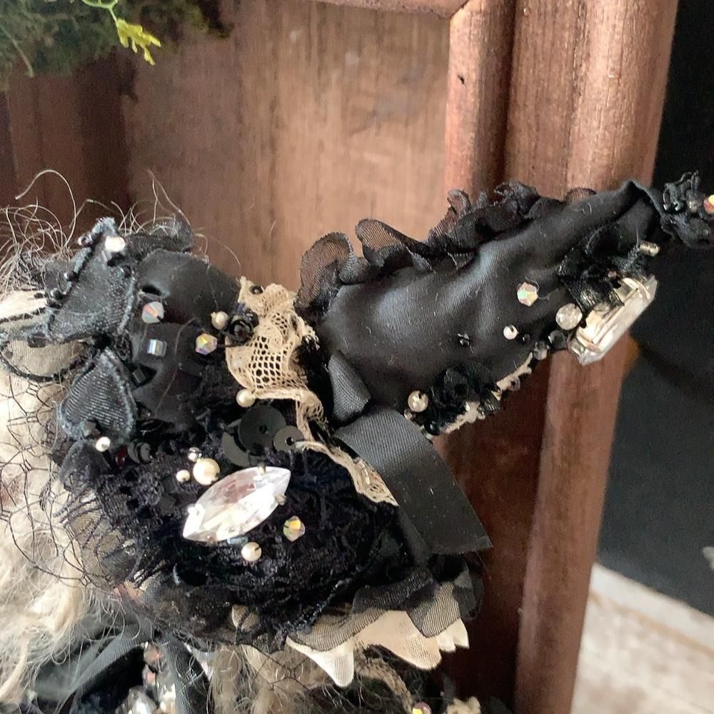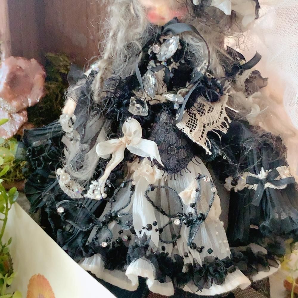 素材:羊毛フェルト、オーガンジー、ビーズ、レース、樹脂他