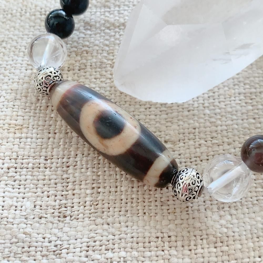 素材:瑪瑙(天珠)、アイスオブシディアン、オニキス、クラック水晶