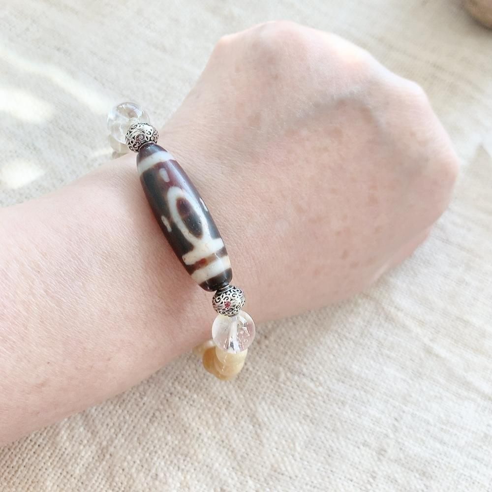 長い歴史の中で、天珠は悪霊や災いから持ち主を守り、幸福や繁栄をもたらすと信じられてきました。英語ではdZi beads(ジービーズ)と呼ばれています。