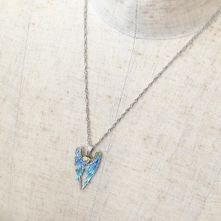 Moment de magie|銀粘土・七宝ネックレス|天使の羽根